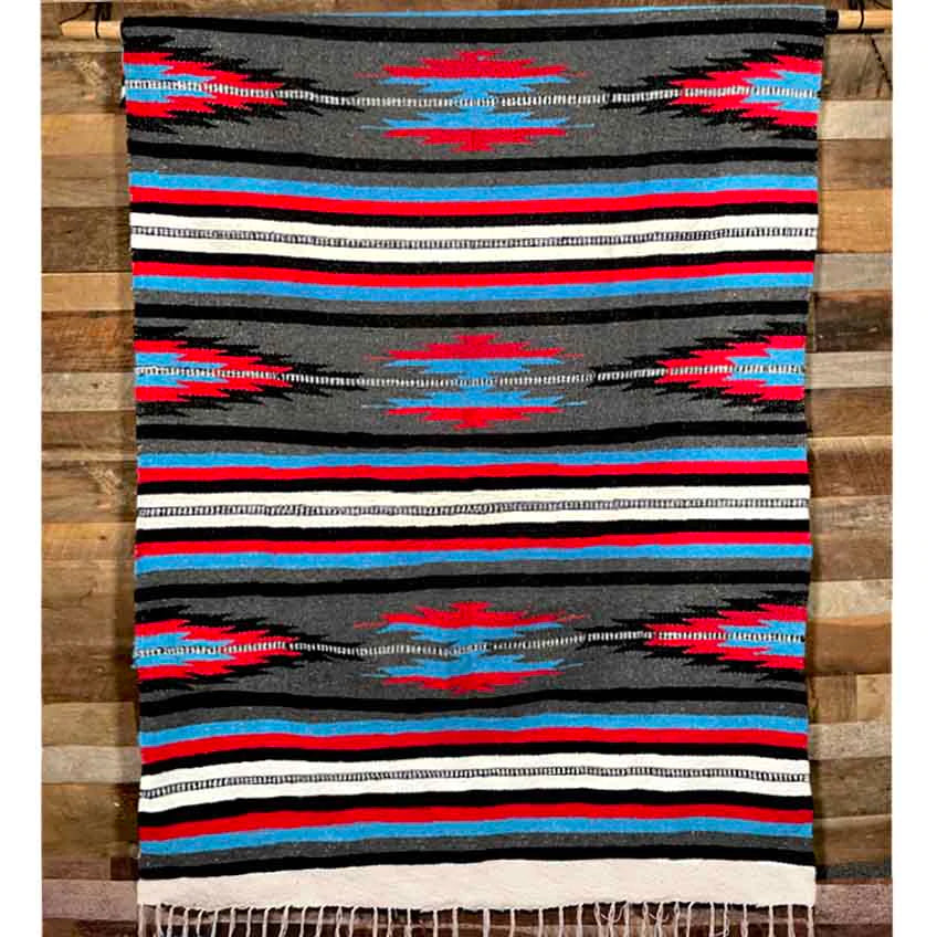 Our Mexican saltillo blankets are hand-loomed from a blend of acrylic, polyester and cotton spun yarn.